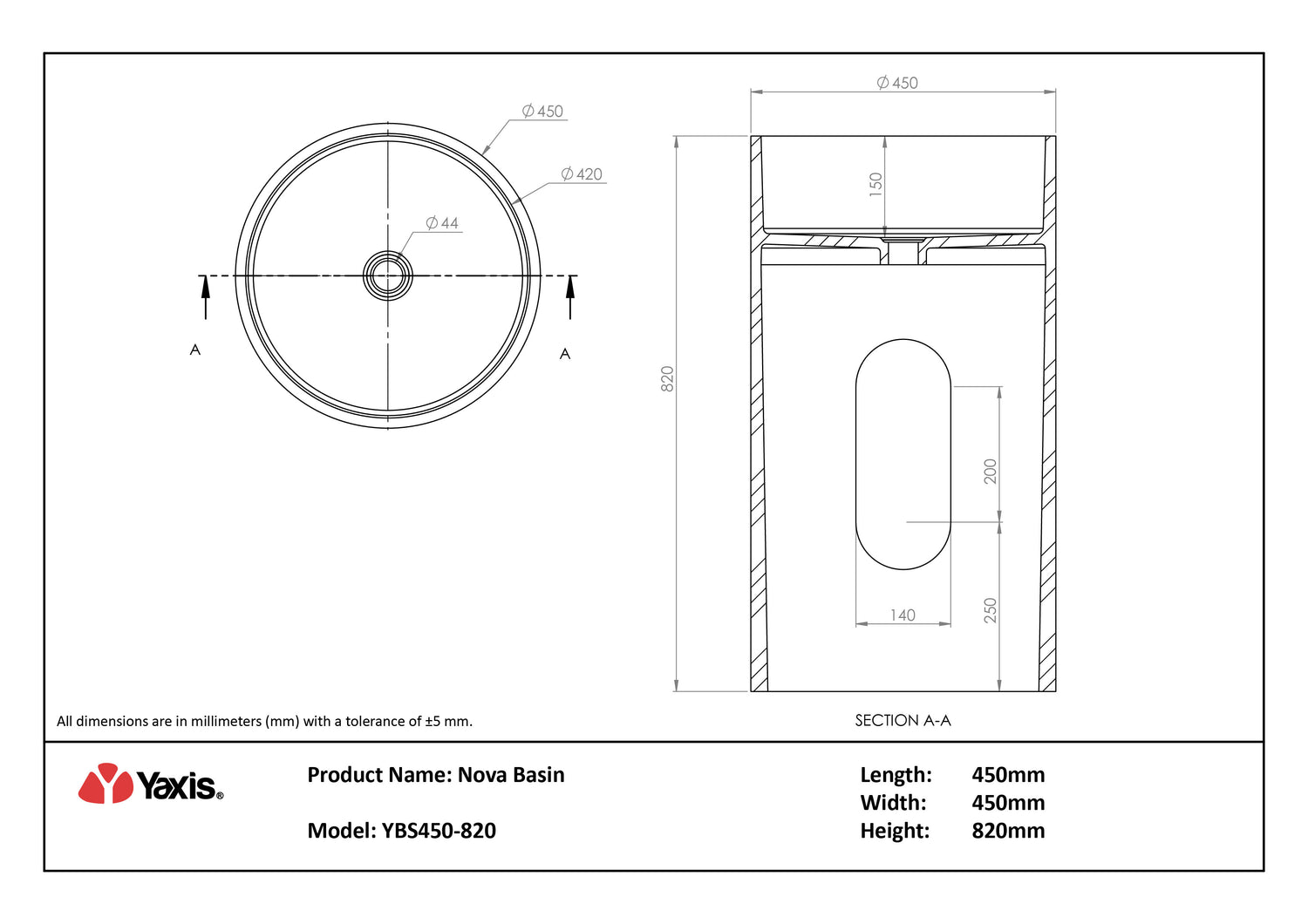 Size: 450mm (W) x 450mm (L) x 820mm (H)